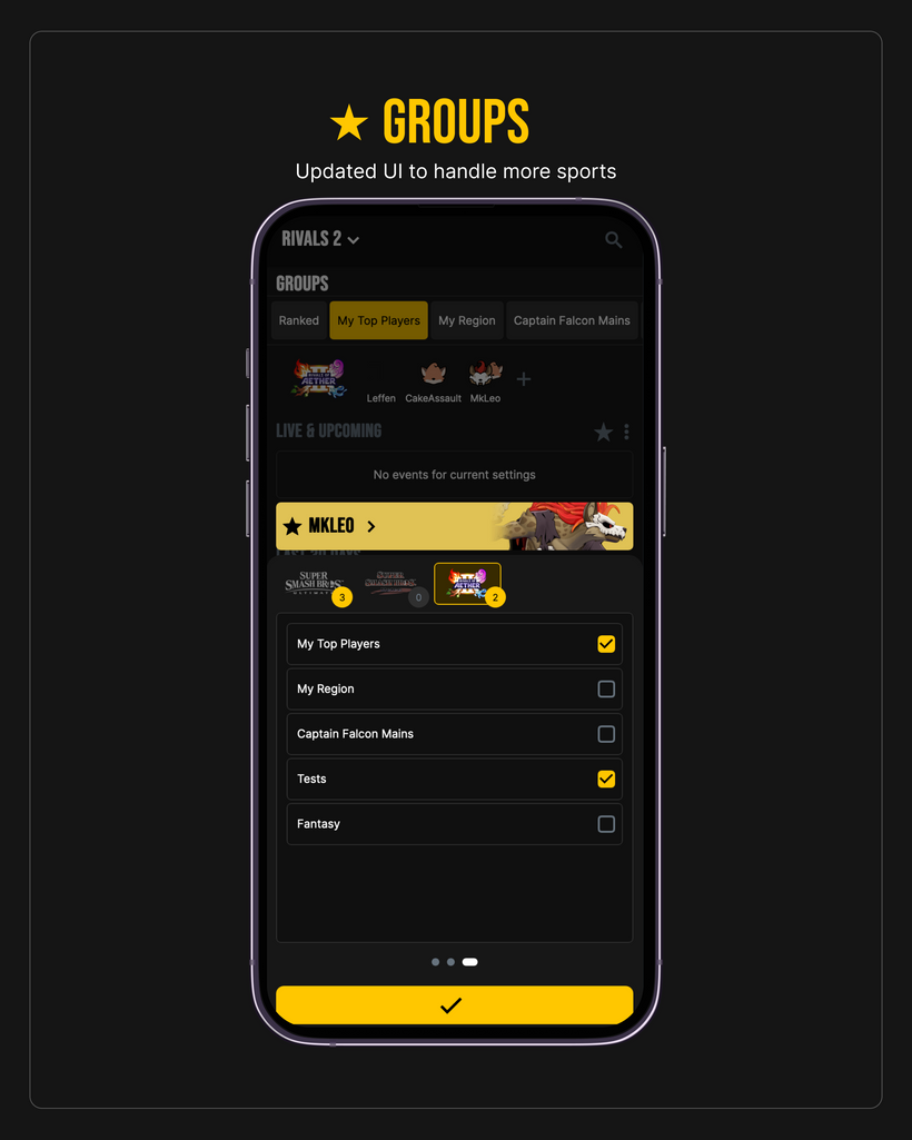 Under the hood, we've refactored the whole app to make it easier to add new games. Most of the data views were thankfully already sport agnostic, but many of the inputs/settings were hardcoded to ultimate/melee.
